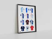 Our high quality art print featuring some of the greatest shirts Rovers have worn throughout their illustrious history.