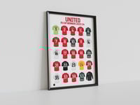 Our high quality art print featuring the shirts worn by the players and the manager from FA Cup winners, Manchester United.