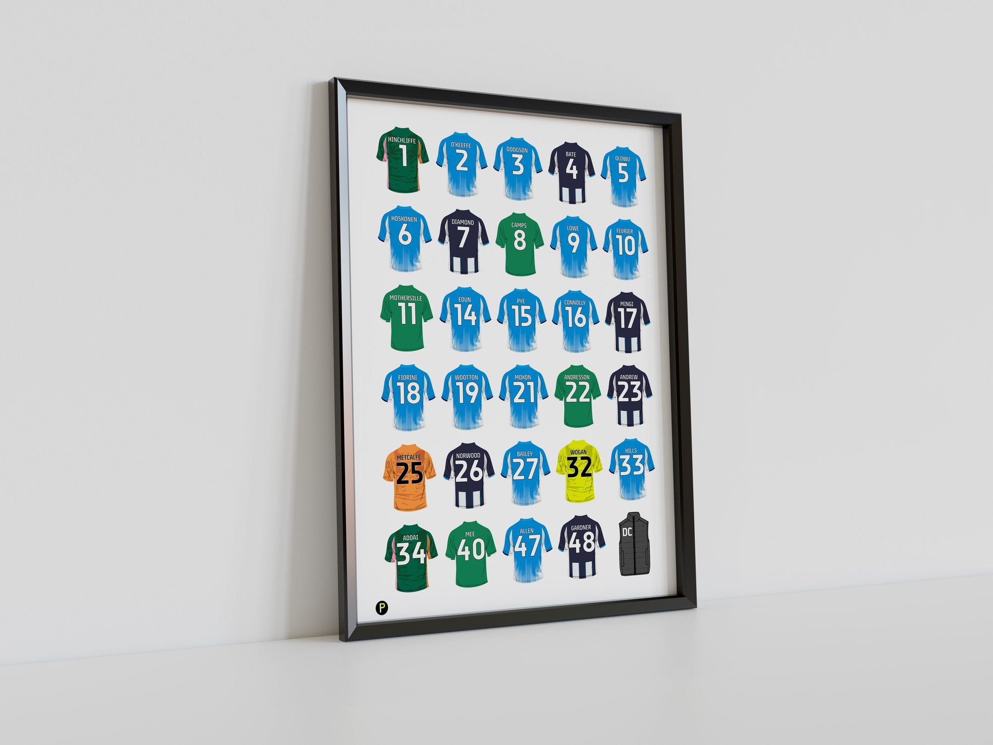 Our high quality art print featuring the shirts worn by the players and the manager from Stockport County during the League One campaign on 2025/26